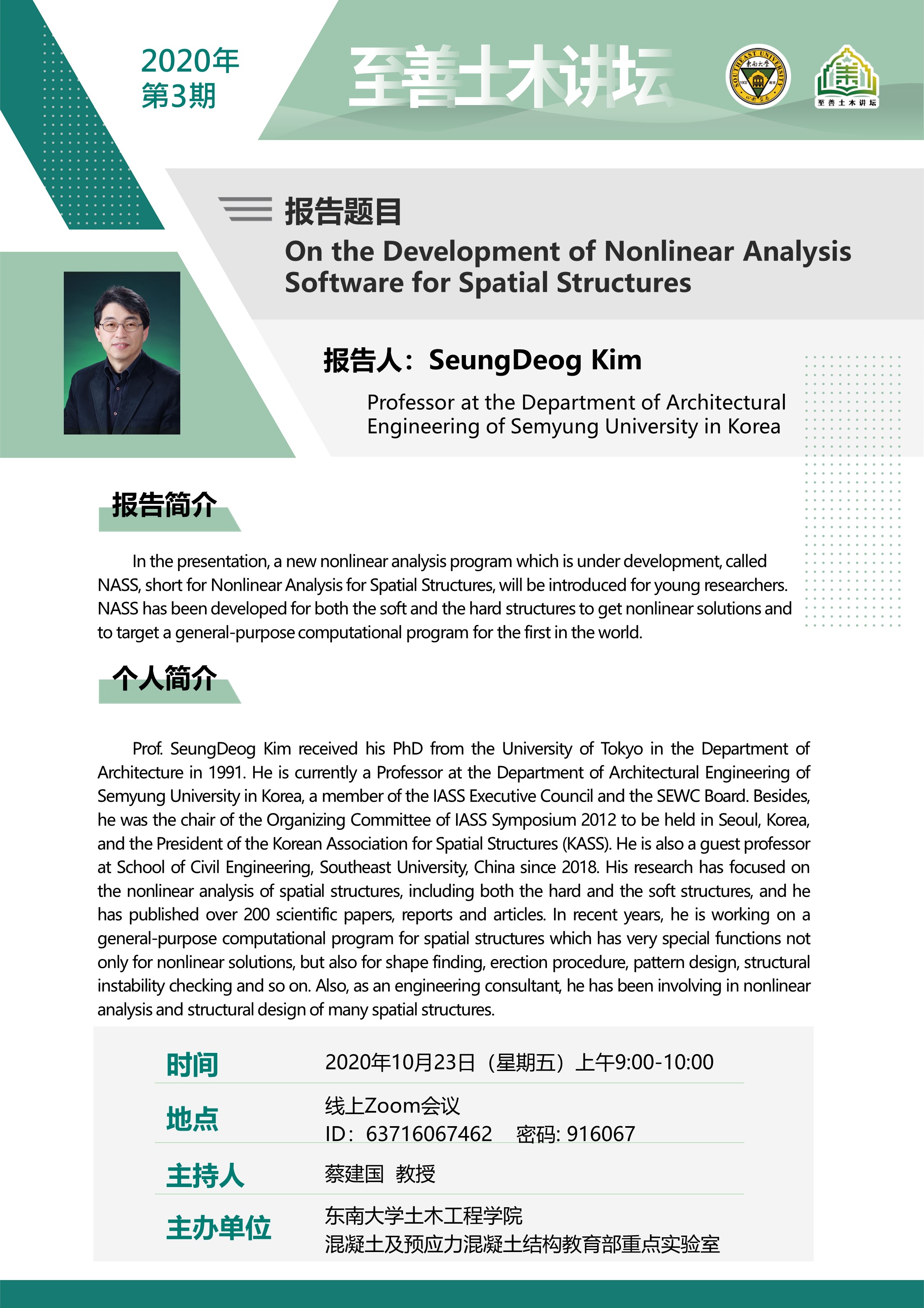 至善土木讲坛 2020年第3期|学术报告:On the Development of Nonlinear Analysis Software for Spatial Structures