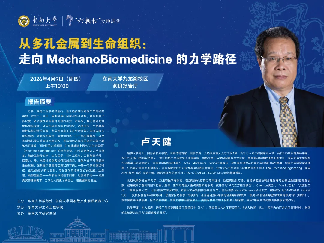 六朝松大师讲堂 | 从多孔金属到生命组织:走向 MechanoBiomedicine 的力学路径